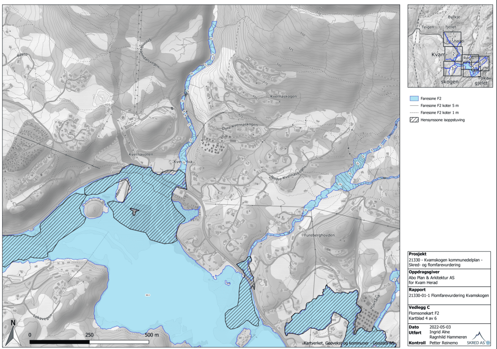 I forbindelse med ny kommunedelplan på Kvamskogen i Kvam kommune utførte Skred AS en skred -og flomfarevurdering av området. Planområdet har flere større og mindre vassdrag som ifølge NVE sine aktsomhetskart for flom utgjør en potensiell flomfare. Det er også kjente utfordringer knyttet til kjøve og isoppdemming, som ble vurdert i samarbeid mellom våre hydrologer og geologer.