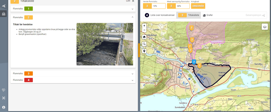 Gjennom prosjektet Flomrespons, som var finansiert av Forskningsrådet, har Skred AS utviklet et system for lokal flomvarsling. Målet med systemet i Flomrespons er både å gi presise lokale varsler av flom i god til før hendelsen inntreffer, men også hjelpe kommunene med å sette inn de riktige tiltakene på rett tid på riktig tidspunkt for å redusere risiko. Systemet er basert på en kombinasjon av sensorteknologi, analyse av meteorologiske ensembler, hydrologisk modellering, og lokalkjennskap til vassdragene og kommunene sine ressurser. Som en del av siste fase av Flomrespons kjørte systemet operativt for 4 ulike nedbørfelt i Nord-Gudbrandsdalen.