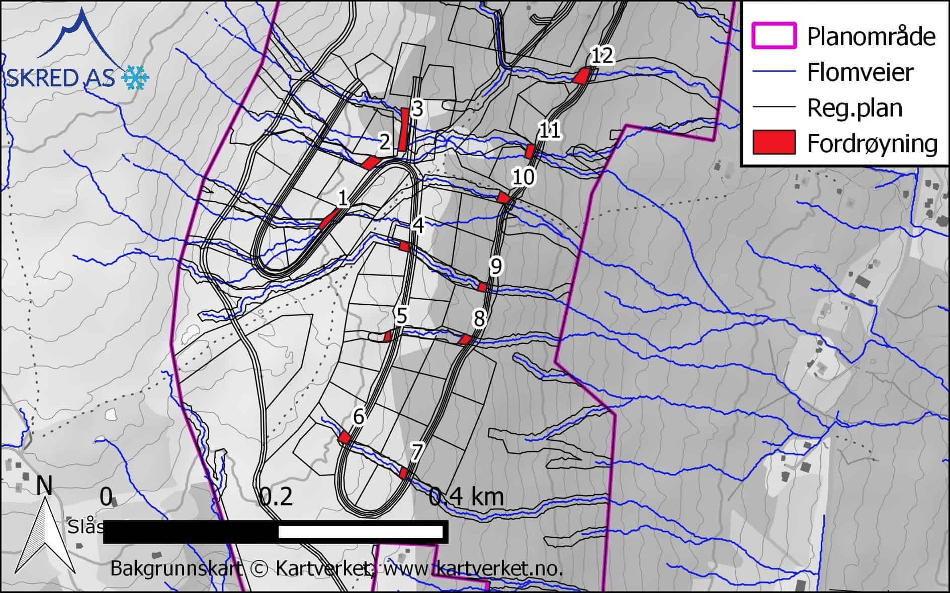 I Holslågrenda i Nord-Fron kommune skal det etableres et nytt hyttefelt med ca. 50 nye tomter. Overvann i området må både håndteres tilstrekkelig internt i planområdet og på en slik måte at nedstrøms områder ikke får økt ulempe. Skred AS har utarbeidet en helhetlig overvannsplan for området samt utført flomfarevurdering av kryssende bekker.