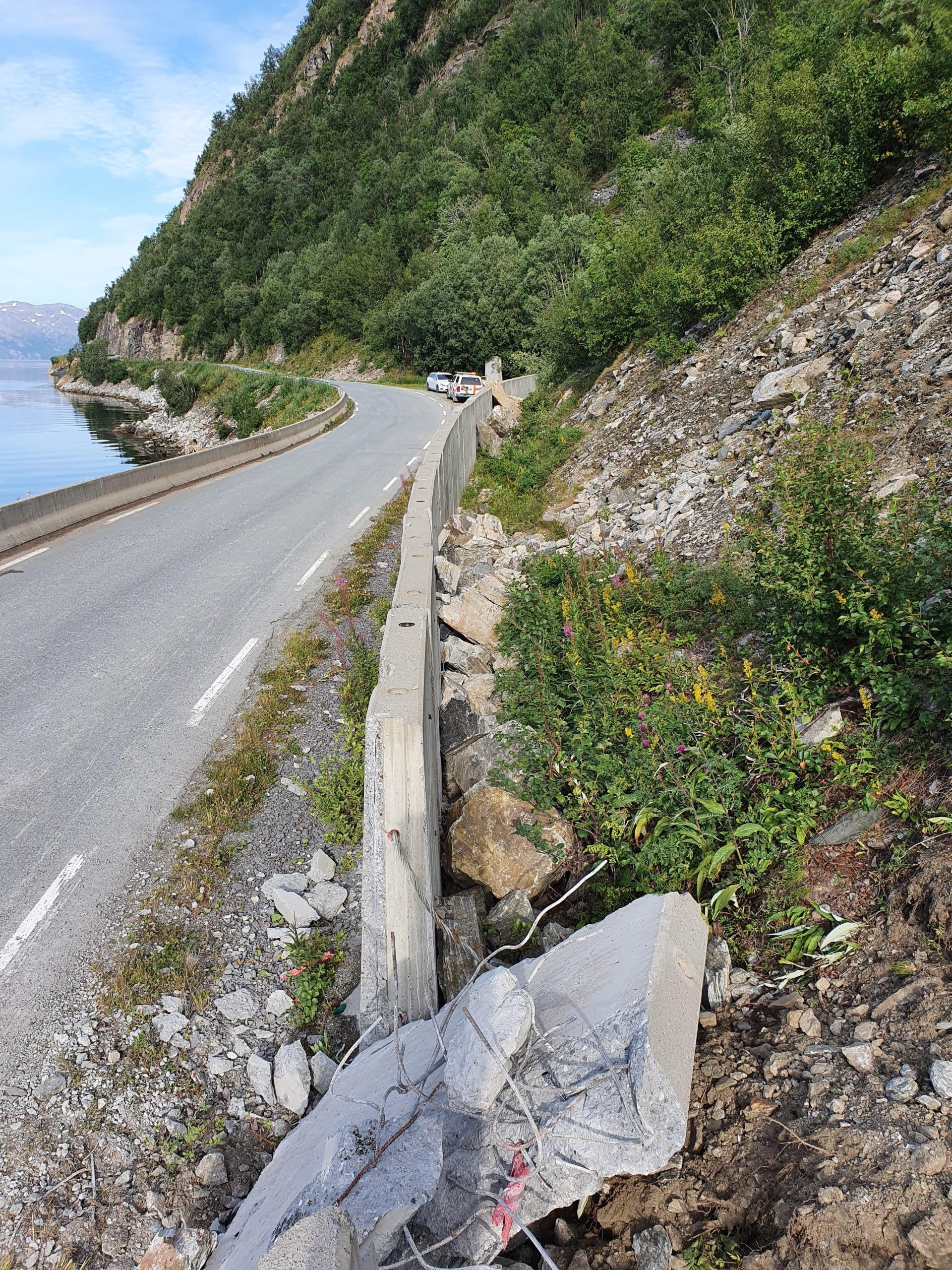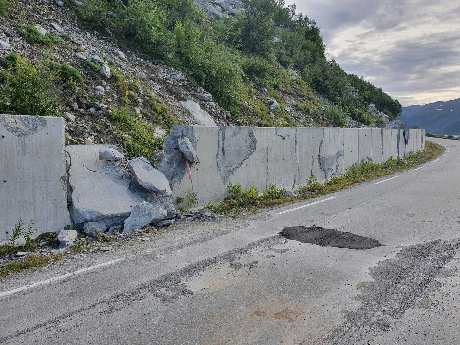 I August 2020 løsnet et steinskred på skredpunktet Skillefjord i Alta kommune. Deler av bergpartiet som løsnet nådde vegen og knuste en sikringsmur i betong i bunn av skredvifta. Skred AS bistod med akuttvurdering og forslag til langsiktig håndtering.